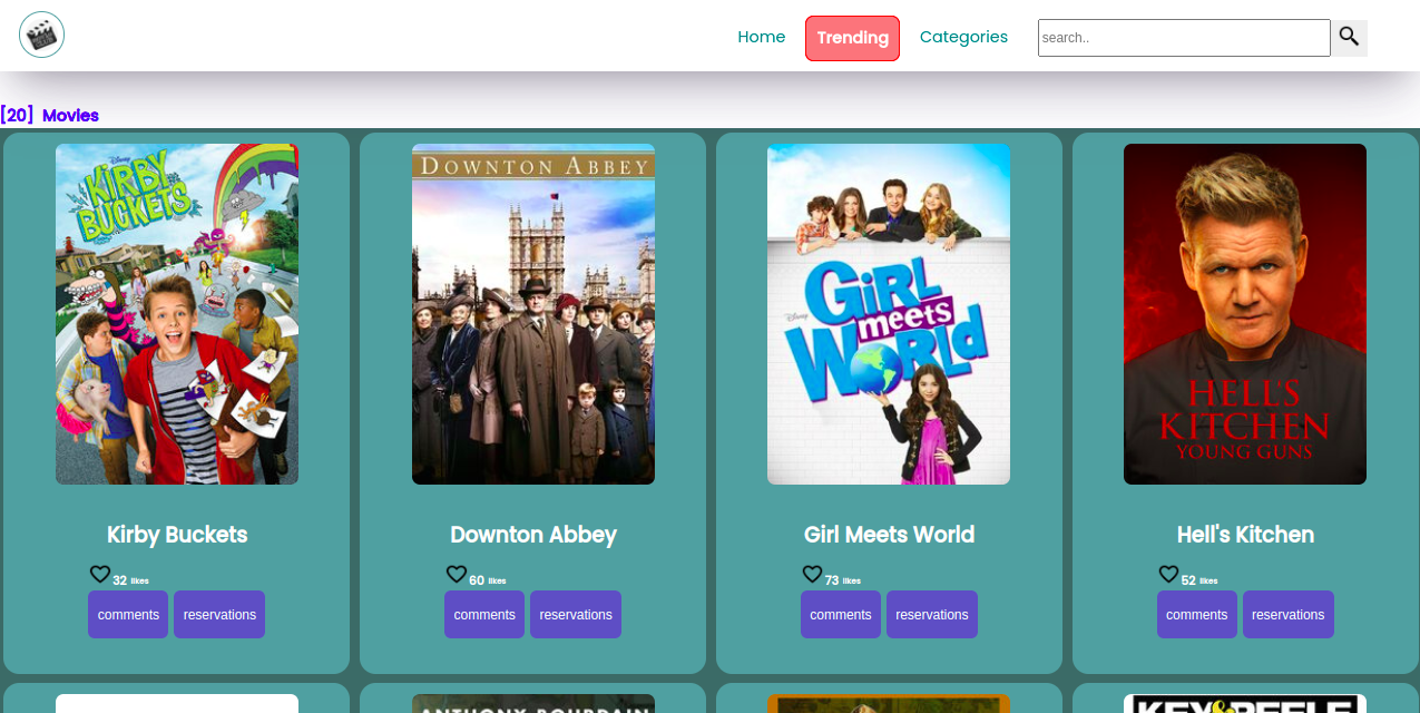 A website that displays a list of movies and allows the user to leave a comment and like.